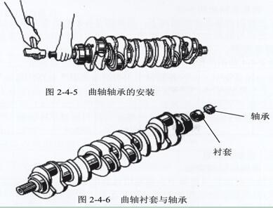 2.曲軸后端孔軸承及軸承襯套的安裝。只安裝軸承襯套的機(jī)有YC4110機(jī)。先安裝軸承襯套后加安裝6205-2軸承的機(jī)有YC4108、YC6105、YC6108、YC6L機(jī)。而YC4112、YC6112及YC6M機(jī)軸承安裝在飛輪上。安裝參見圖2-4-5、圖2-4-6。